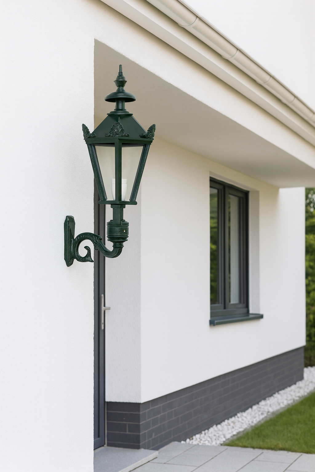 Gefertigt aus hochwertigem Aluminium und lackiert in edlem Dunkelgrün, ist die Lampe witterungsbeständig und ideal für den langfristigen Einsatz im Außenbereich geeignet.